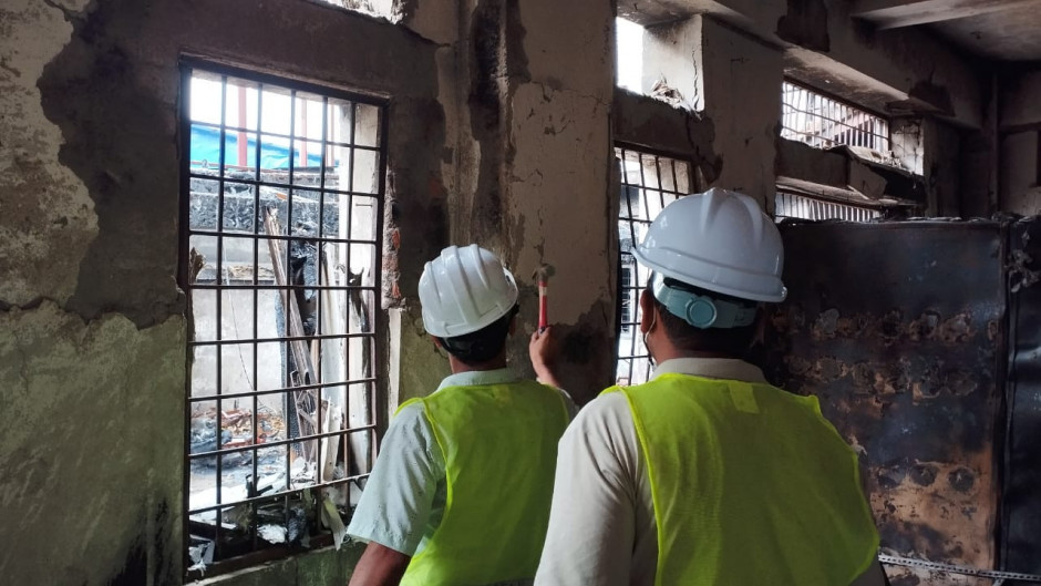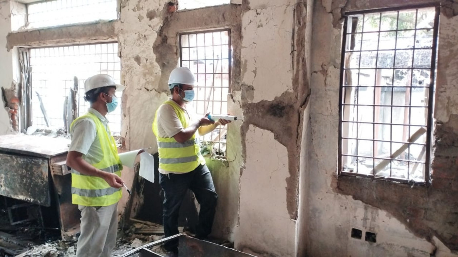 आन्दोलनबाट मन्त्रालयको भवनमा भएको क्षतिको प्रारम्भिक चरणको प्राविधिक परिक्षण हुदै