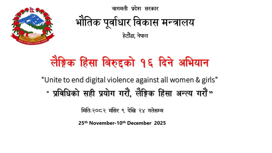 तस्बिर : लैङ्गिक हिंसा बिरुद्द १६ दिने अभियान नारा "Unite to End Digital Violence Against all Women and Girls "